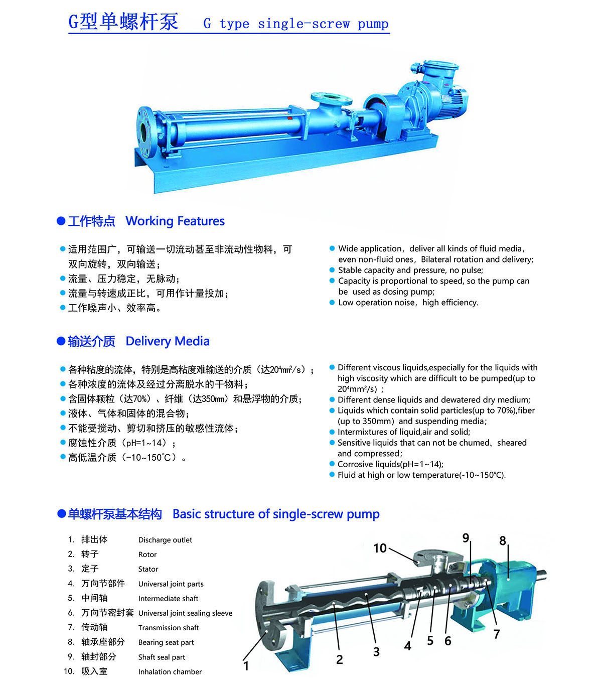 適用范圍廣,可輸送一切流動甚至非流動性物料,可雙向旋轉,雙向輸送;流量、壓力穩(wěn)定,無脈動;流量與轉速成正比,可用作計量投加;工作噪聲小、效率高。
