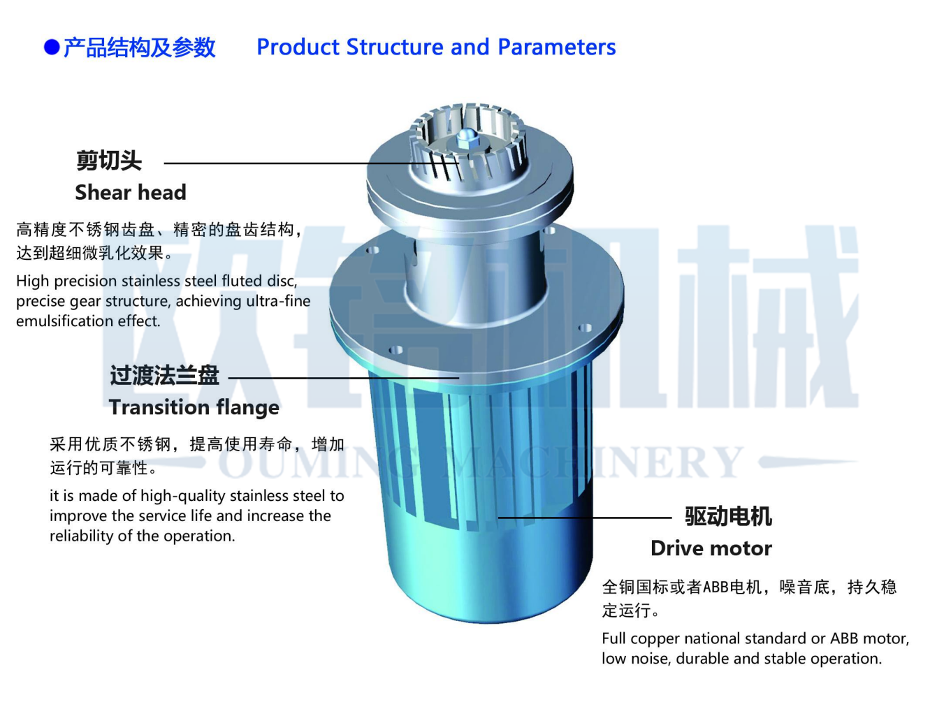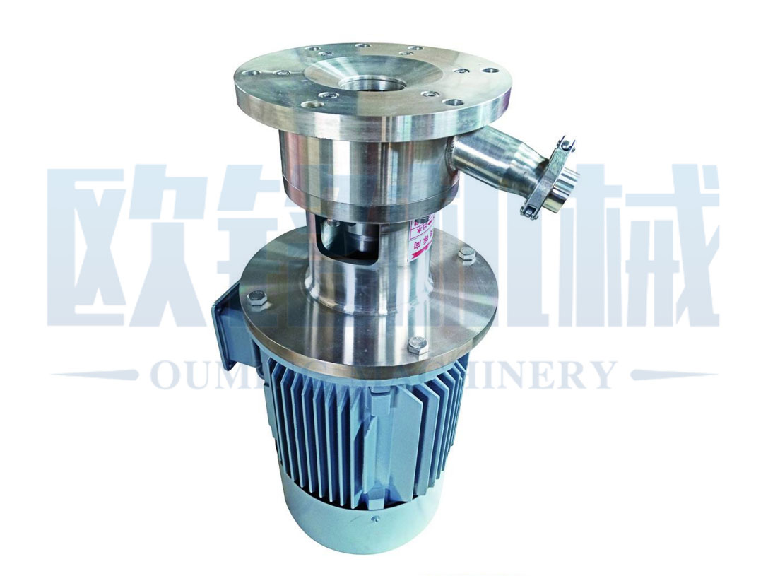 BEX釜底乳化泵是一種倒立式安裝于釜底的高剪切乳化設(shè)備,物料從主機(jī)上部與下部同時(shí)吸入,并向四周離心擠出,由于轉(zhuǎn)子高速旋轉(zhuǎn)所產(chǎn)生的高剪切線速度和高頻機(jī)械效應(yīng)帶來(lái)的強(qiáng)勁動(dòng)能,使物料在定子和轉(zhuǎn)子狹窄的間隙中受到強(qiáng)烈的機(jī)械及液力剪切、離心擠壓、液層摩擦、撞擊撕裂和湍流等綜合作用,從而使不相溶的固相、液相、氣相在相應(yīng)成熟工藝和適量添加劑的共同作用下,瞬間均勻精細(xì)地分散乳化,經(jīng)過(guò)高頻的循環(huán)往復(fù),最終得到穩(wěn)定品質(zhì)的產(chǎn)品。