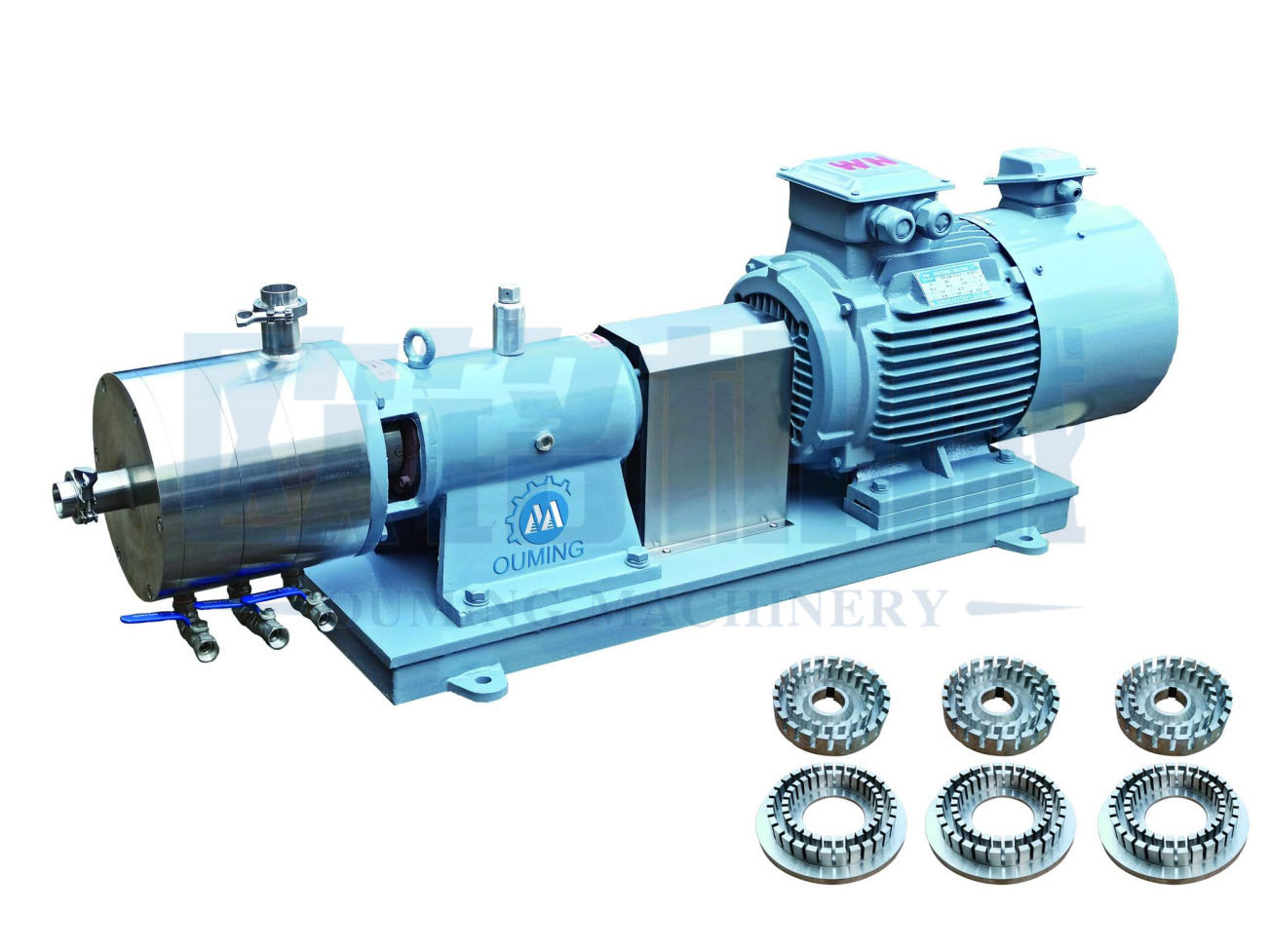 均質(zhì)乳化泵其工作原理是在電機(jī)的高速驅(qū)動(dòng)下,物料在多層轉(zhuǎn)子與定子之間的狹窄間隙內(nèi)高速運(yùn)動(dòng),在某種特殊結(jié)構(gòu)作用下使物料在工作腔內(nèi)承受每分鐘幾十萬次甚至上百萬次的高速剪切,形成強(qiáng)烈的液力剪切和湍流,在同時(shí)產(chǎn)生離心、擠壓、研磨、碰撞、粉碎等綜合作用力的協(xié)調(diào)下達(dá)到充分分散、均質(zhì)、乳化、破碎、細(xì)化、混合等工藝要求。物料最高細(xì)化度達(dá)40μm,工作腔內(nèi)的定、轉(zhuǎn)子層數(shù)越多,剪切面越大,效果越好。形成了集分散、均質(zhì)、粉碎、乳化、混合、溶解、懸浮、輸送等為一體的多功能設(shè)備,使您的產(chǎn)品更具競爭力。